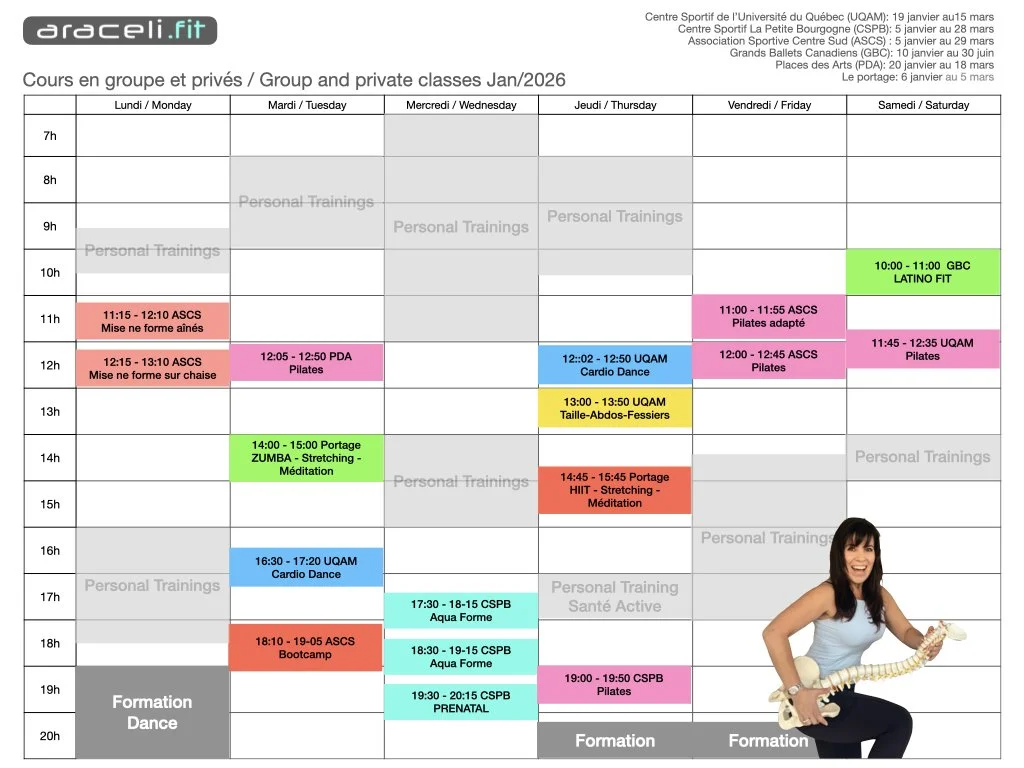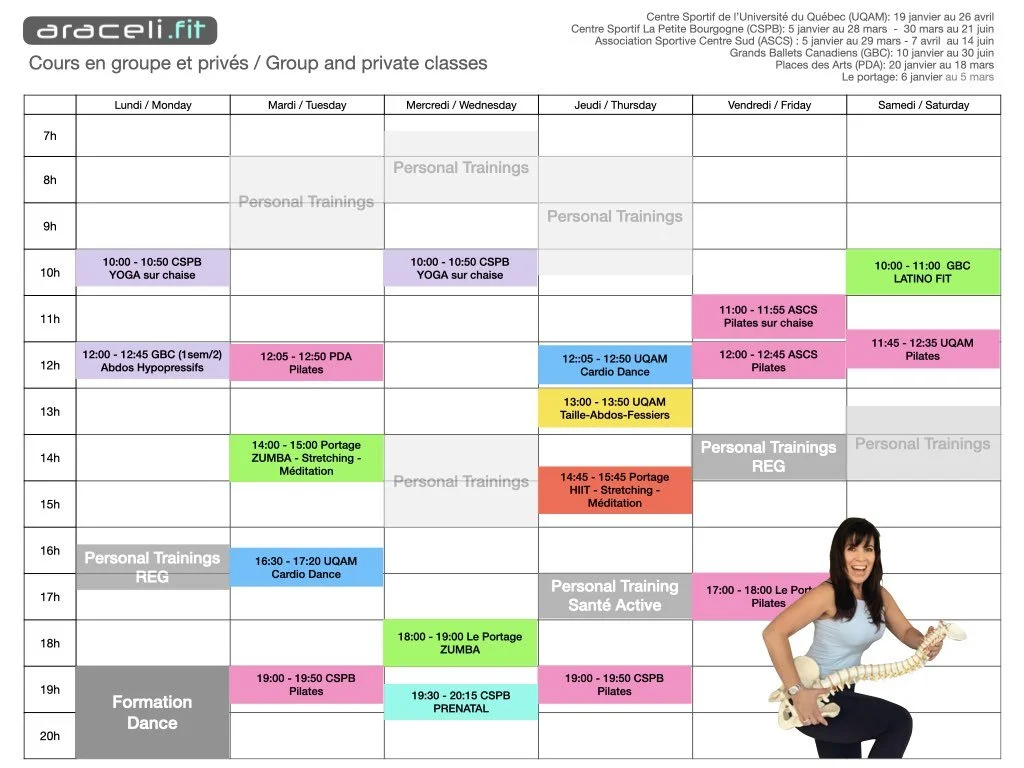 Horaire des cours en groupe et privés